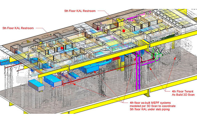 - High definition laser scans of existing structures to create as-built models for coordination and design